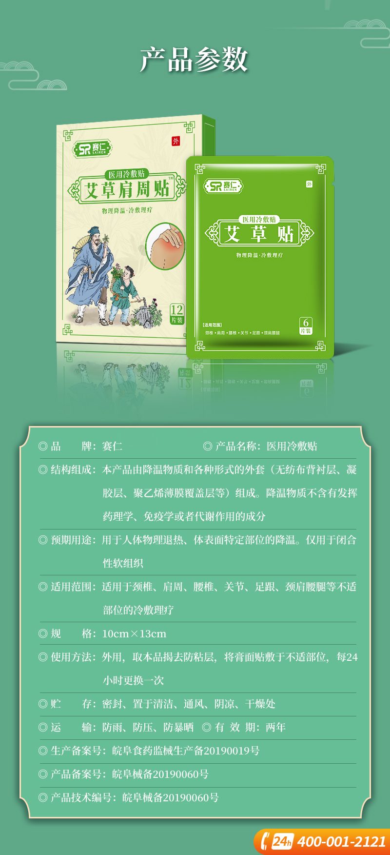 赛仁 医用冷敷贴 艾草肩周贴