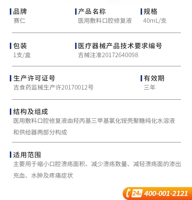 赛仁 医用敷料口腔修复液