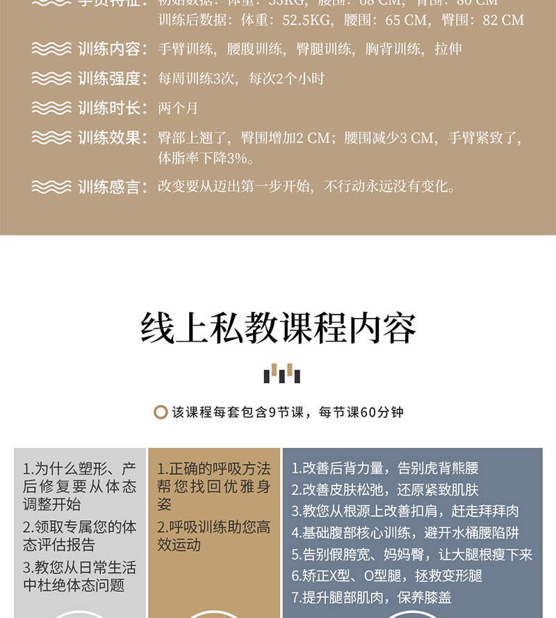 全身塑形&产后修复国际认证健身私教一对一线上视频私教课 全套九节正课(1小时/节)