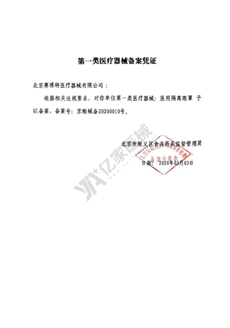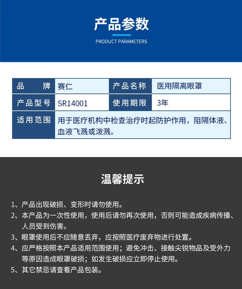赛仁 医用隔离眼罩
