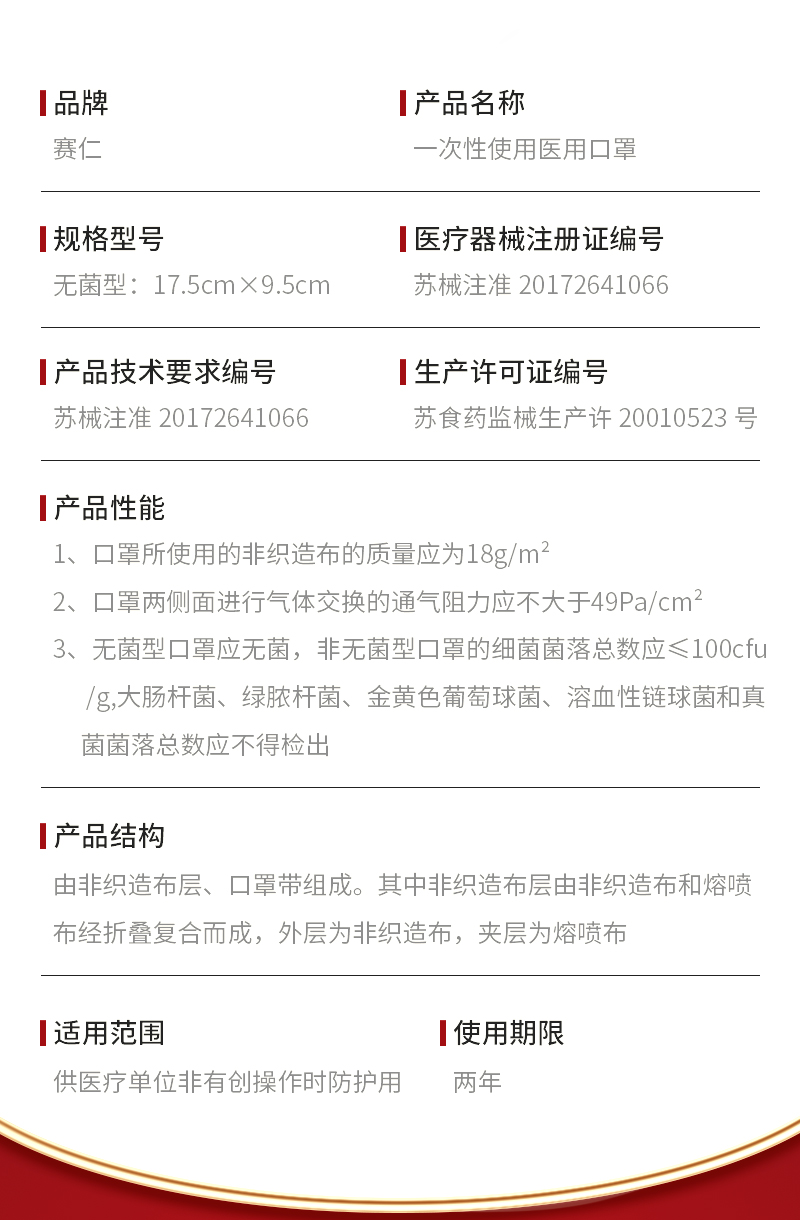 赛仁 一次性使用医用口罩