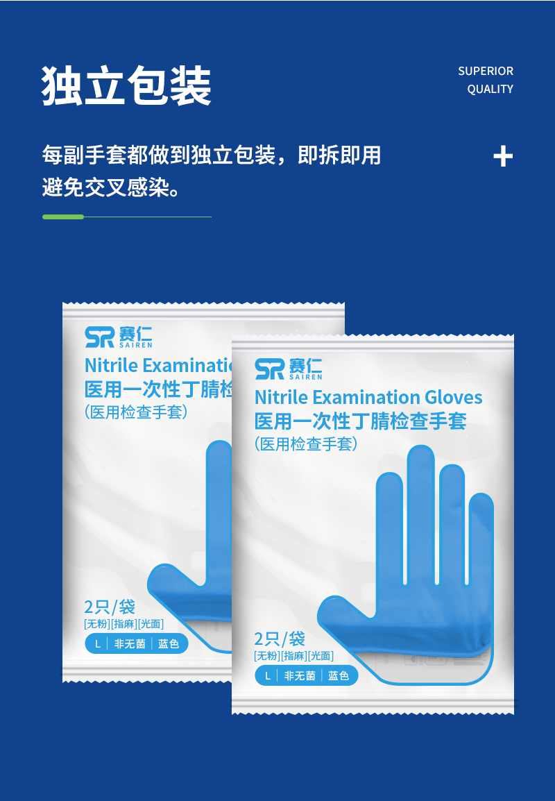 赛仁 医用一次性丁腈检查手套