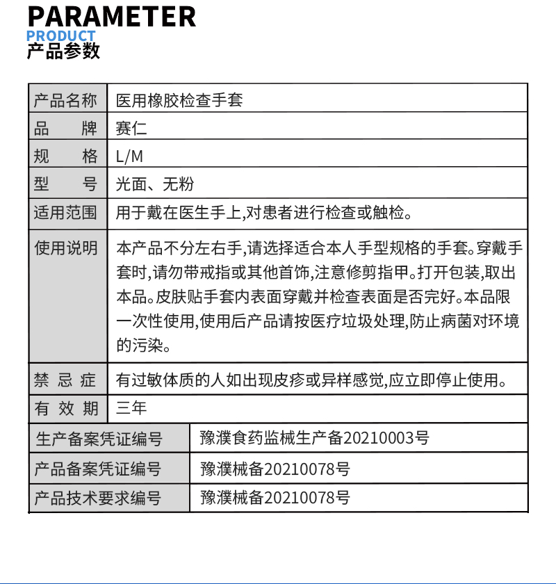 赛仁 医用橡胶检查手套