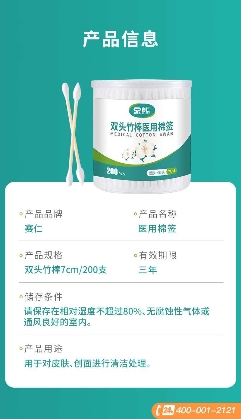 赛仁 双头竹棒医用棉签