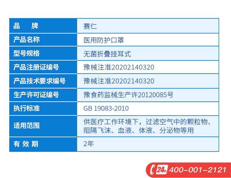 赛仁 医用防护口罩(儿童白色)