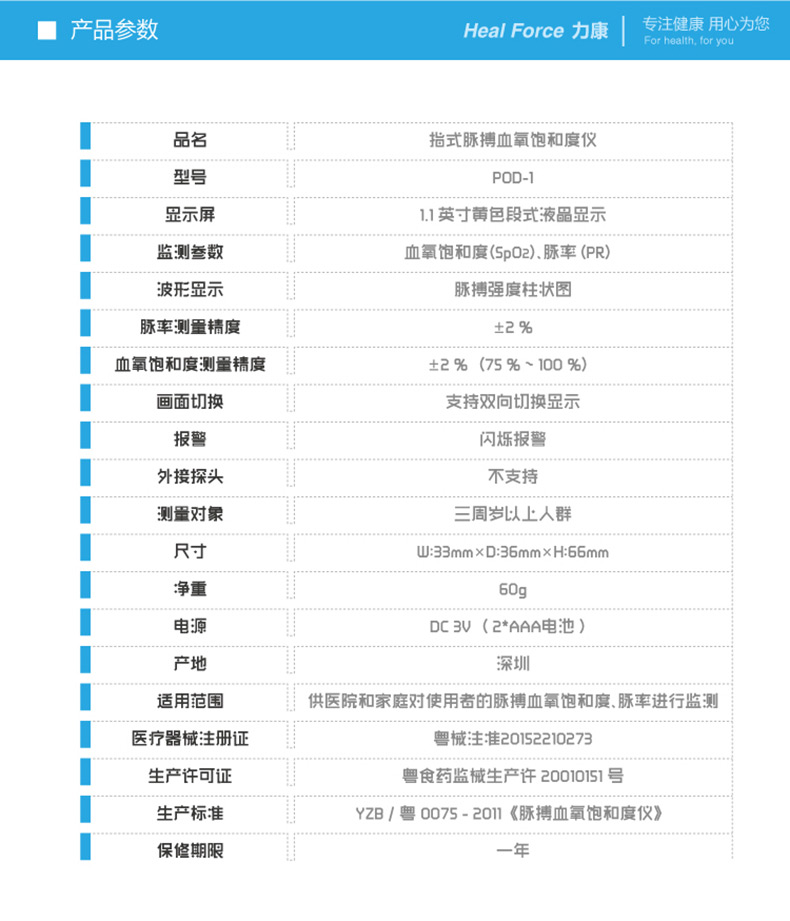 力康便携式血氧仪POD-1