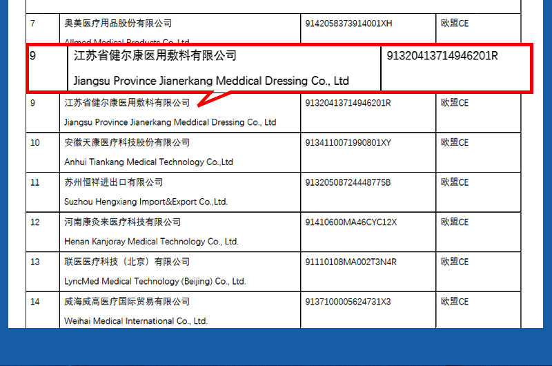 医疗用品出口清单
